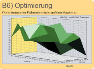 zwischenzeitliche Verlust ist zu hoch, das System zu instabil. Es zeigte sich aber auch, dass bei einem stabil laufenden System, also einer Verringerung der Höhe der Drawdown Phasen, die dynamische Money Management Strategie des Systems 2, einen erheblich höheren Nettogewinn generieren würde. Durch weitere Optimierungsschritte soll nun versucht werden, die Performance des Handelsansatzes zu verbessern, und zwar einerseits durch die Optimierung der Grenzwerte die den Überkauft-/Überverkauft-Bereich definieren, andererseits durch die Optimierung des Equity Einsatzes pro Trade.